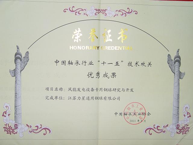 中國軸承工業(yè)協(xié)會技術(shù)委員會第六屆全體委員大會于2011830在寧波召開,會上,對“十一五”技術(shù)攻關(guān)優(yōu)秀成果及先進(jìn)企業(yè)進(jìn)行了表彰。我公司“風(fēng)力發(fā)電設(shè)備專用鋼球研究與開發(fā)”攻關(guān)項(xiàng)目,獲全國軸承行業(yè)“十一五”技術(shù)攻關(guān)優(yōu)秀成果獎,并被予以表彰。
