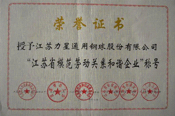 公司被授予“江蘇省模范勞動關系和諧企業”