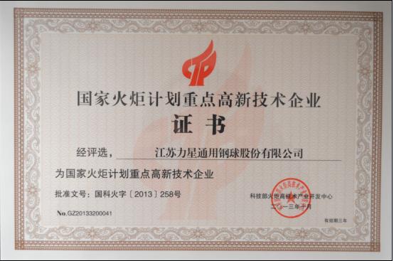 公司被評為“江蘇省科技型中小企業”和“國家火炬計劃重點高新技術企業”
